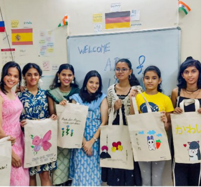 This workshop " When Art met Language " offers a unique blend of art and language, inviting students to personalize a tote bag with a meaningful quote in any foreign language. It's a creative way to explore different cultures and express individuality through art and words.